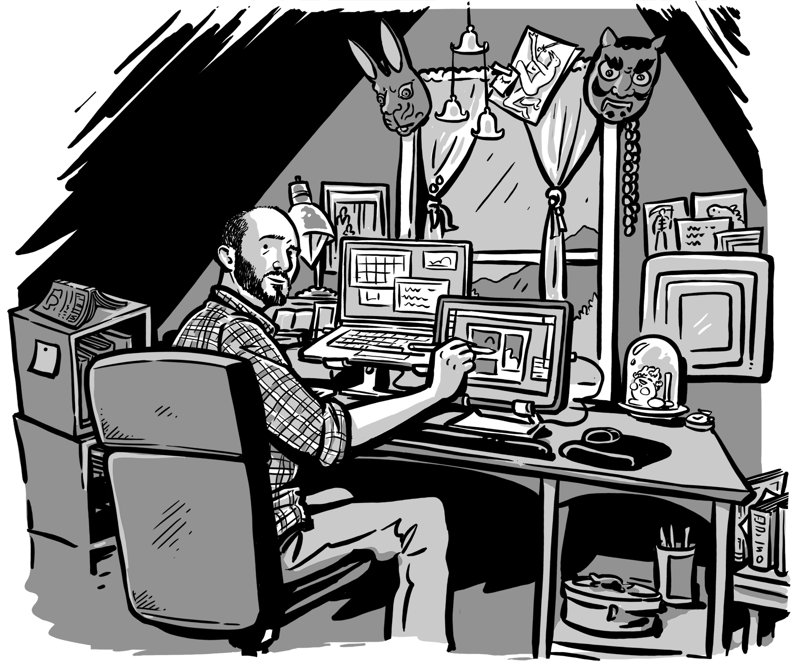 He was a contributing editor at The Nib from 2016 until it ceased publication in 2023, and teaches cartooning at the California College of the Arts, Stanford University and The Animation Workshop in Denmark.